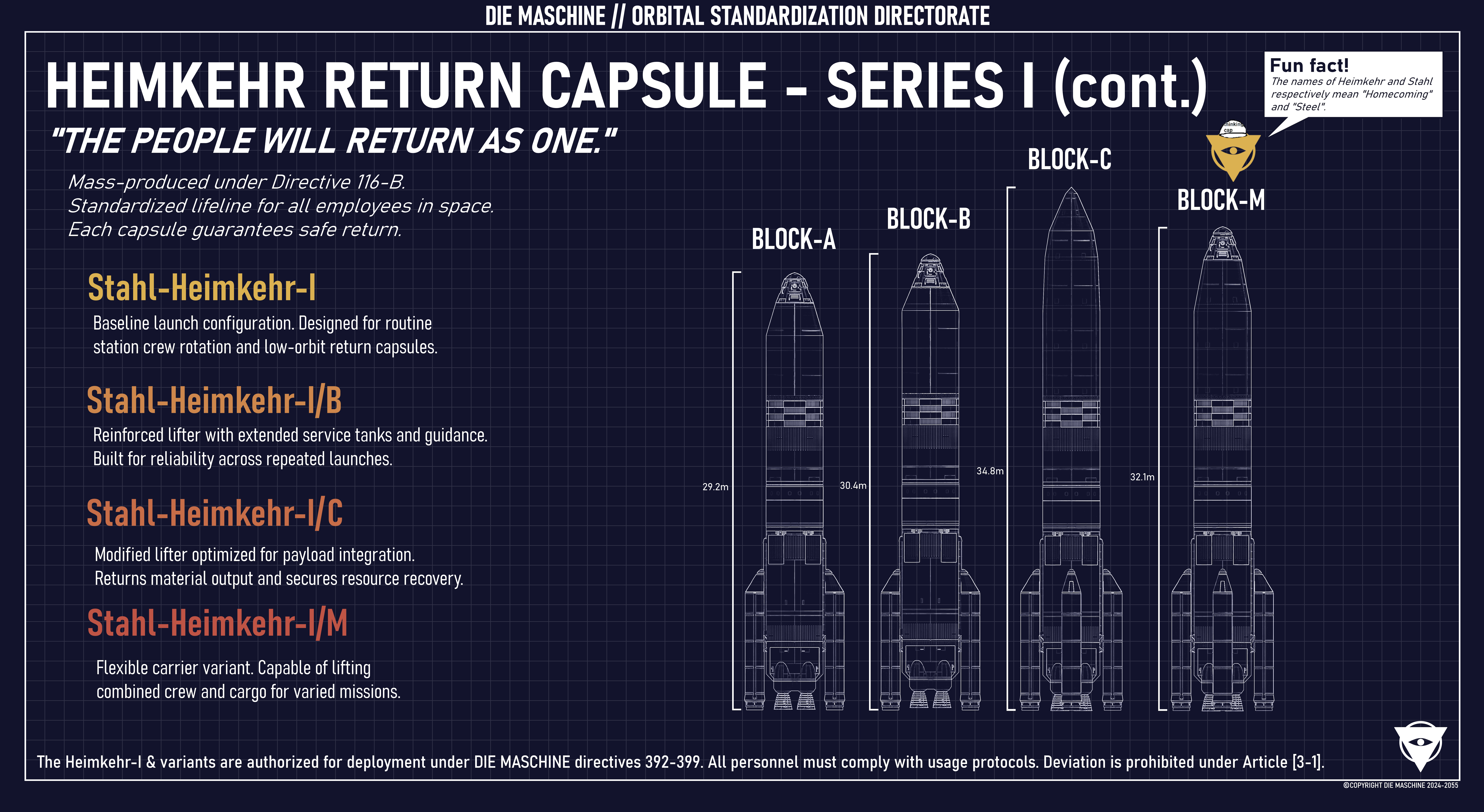 Heimkehr capsules, Stahl lifters, stations, and mission directives.